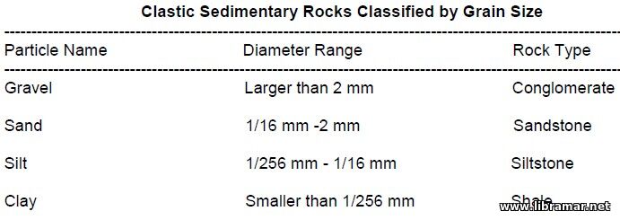 Clastic rocks are classified primarily by grain size. They are named according to the size of the particles that make up more than 50 percent of their bulk. A rock composed of 60 percent sand and 40 percent calcite, for example, would be called limy sandstone.
